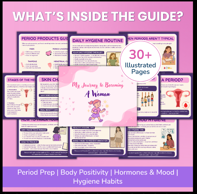 ❤️ It covers things like body changes, hygiene routines, handling emotions, and building self-confidence — all explained with care, kindness, and calm. It’s everything a girl needs to feel informed, supported, and okay with growing up.